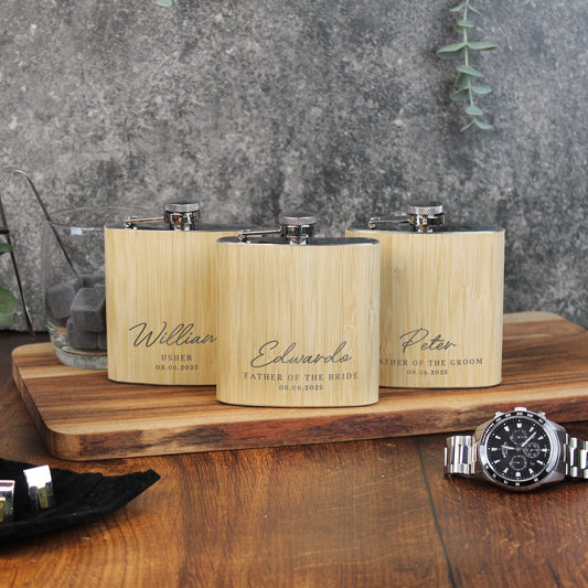 Personalised Wooden Groomsman Hip Flask, 7oz